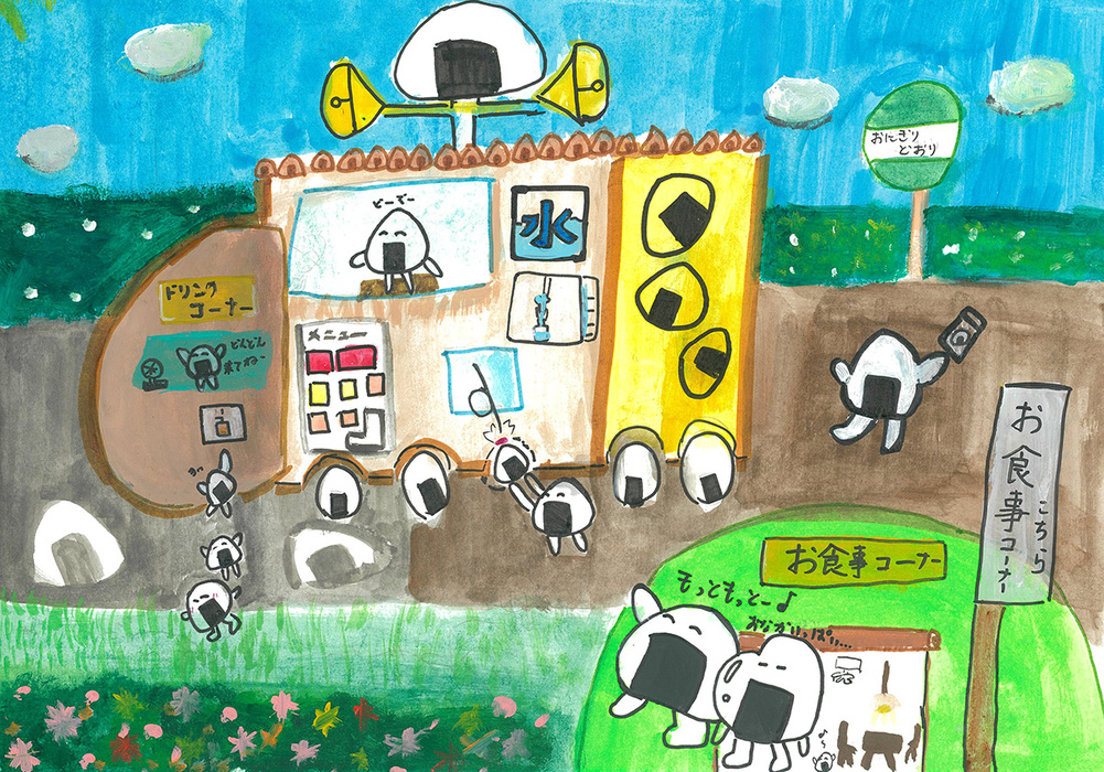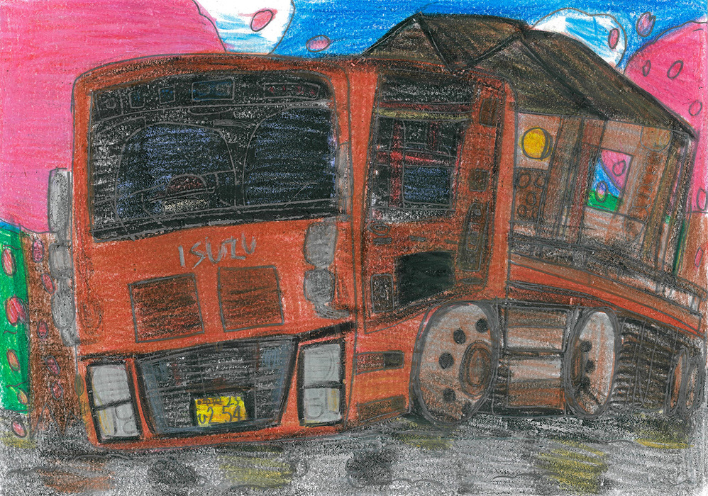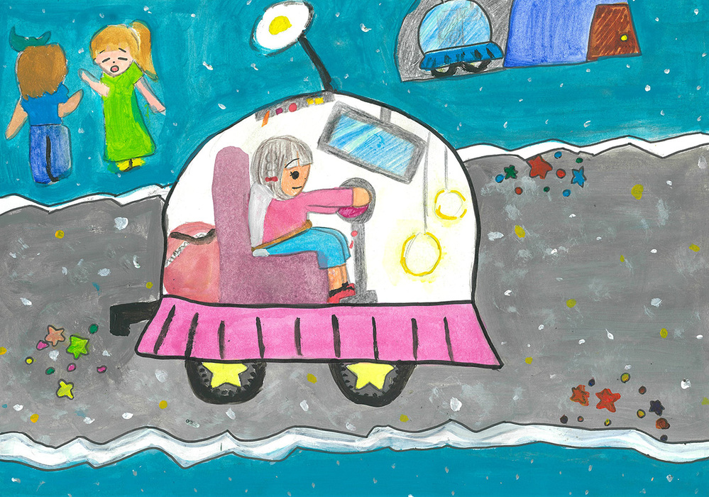 コメント:今、私はピアノを習っています。将来、世界中で歌って演奏出来る車があれば良いなと思い描きました。未来では音を出しながら走ったり空も飛べます。