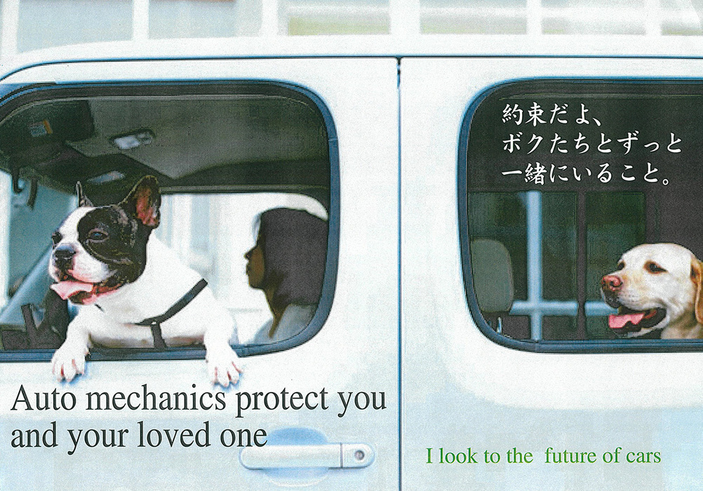 コメント:約束だよ、ボクたちとずっと一緒にいること。自動車整備士はあなたと愛する家族を守ります。僕は車の未来を見つめる。
