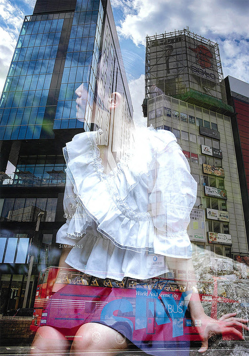 コメント:多重露光で、都会に夢を抱いている少女を表現