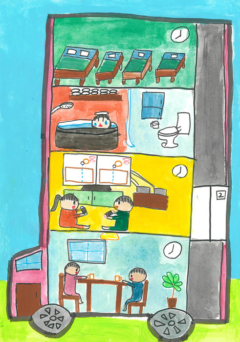 コメント:車の中で生活できるようにしました。4階だてで、かなり広いので、大家族におすすめです。
