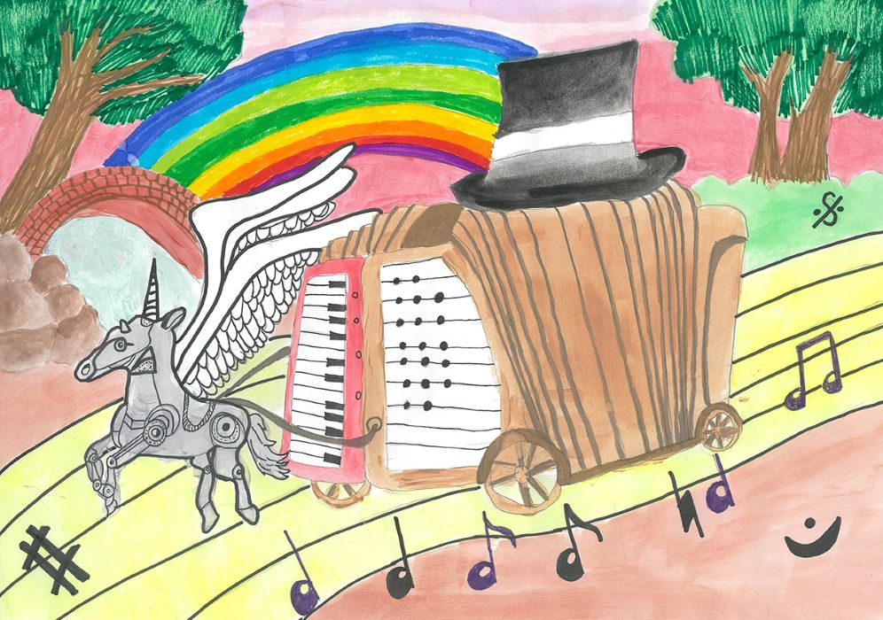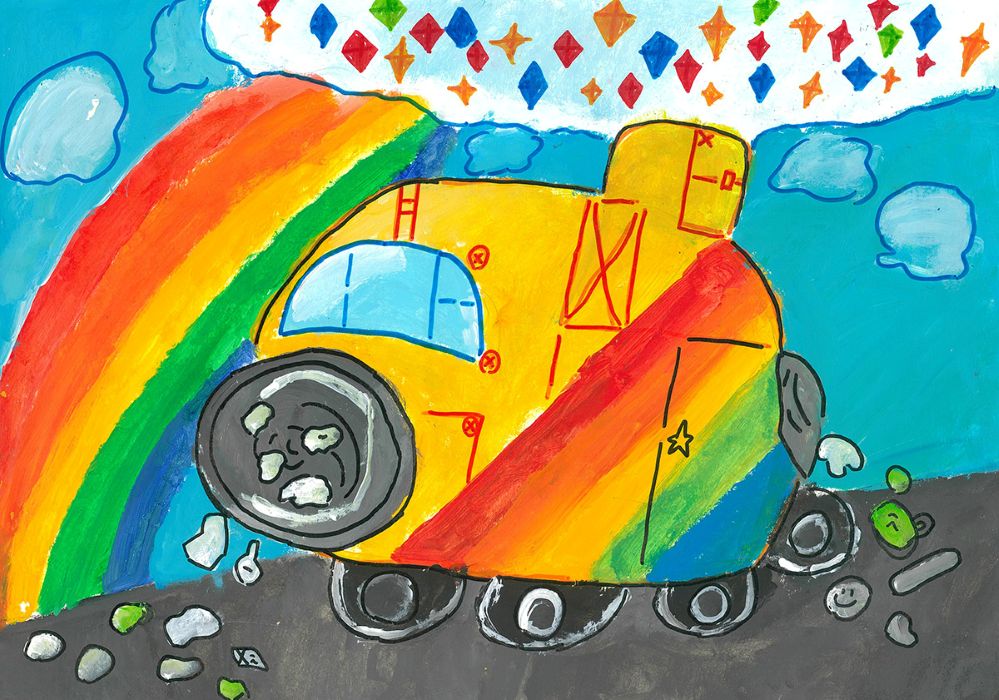 コメント:今、私はピアノを習っています。将来、世界中で歌って演奏出来る車があれば良いなと思い描きました。未来では音を出しながら走ったり空も飛べます。