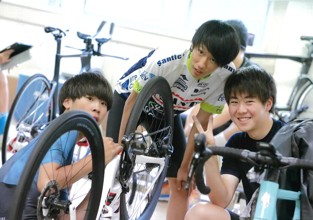 コメント:自転車部の部員の人達がみんなで整備しているところを撮影しました。