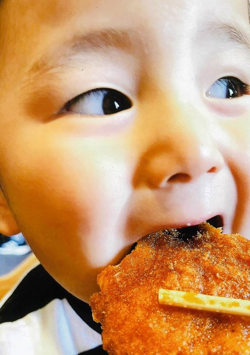 コメント:男の子がお腹を空かせて、早く!早く!!ととんかつを欲しがっている写真を撮りました。