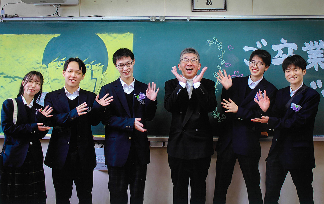 コメント:部活の先輩方の卒業式のあとの1コマです。担任の先生との楽しいショットが撮れました。よく遊びに行った3年の教室ともお別れです。