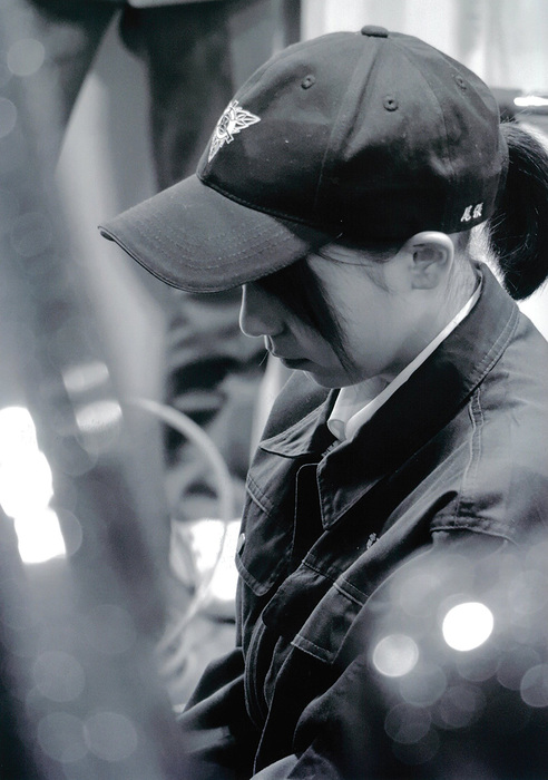 コメント:整備士の真剣な姿は、車に新たな命を宿す誇りと責任が感じられる一瞬を撮影しました。